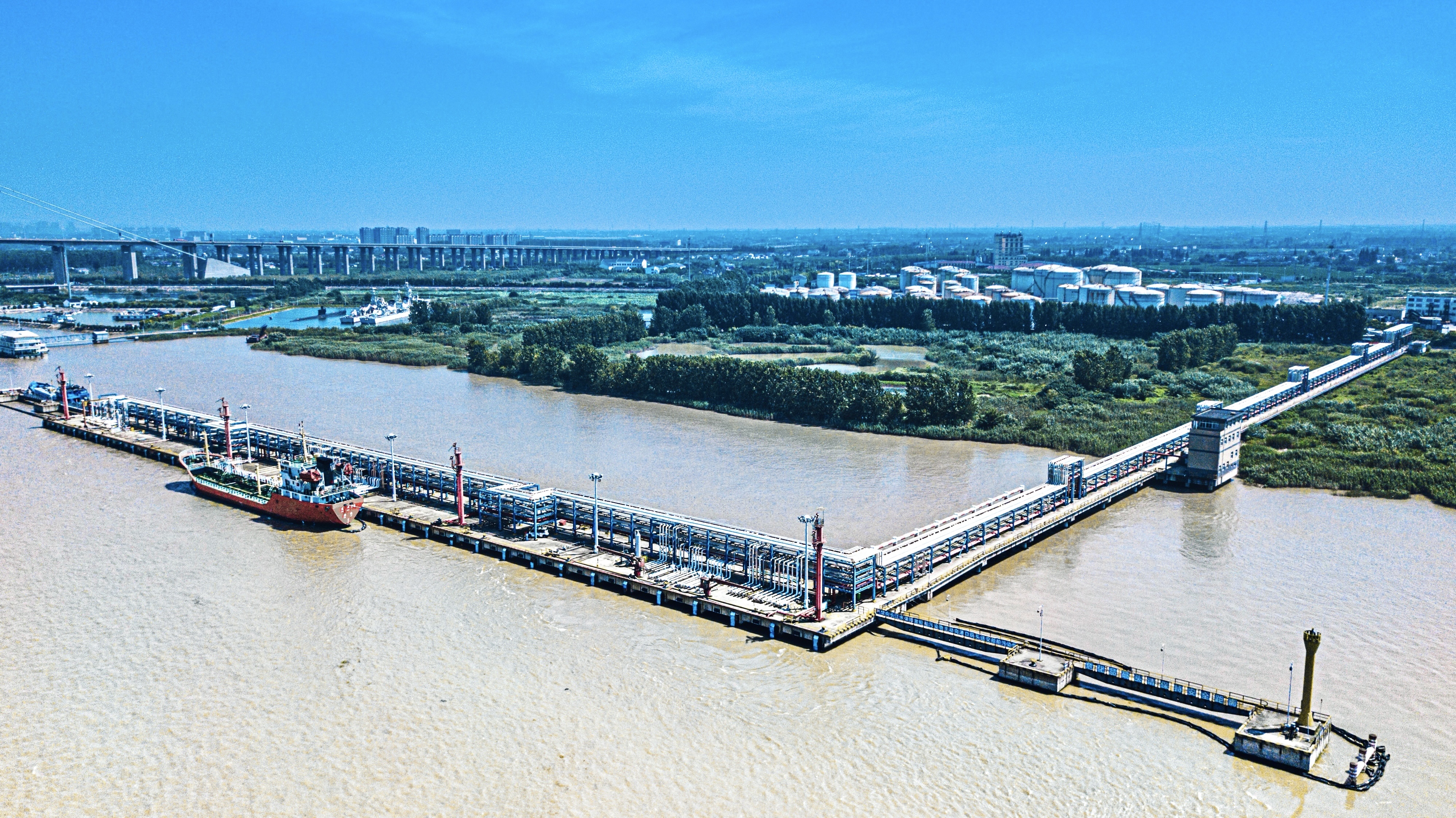 公司构建了码头罐区一体化的布局,436米天然深水岸线,设计通过能力达341万吨,是沿江单体最大的化工码头之一。码头设计水深14.5米,常年水深达15米以上,外挡设有2个泊位(3个靠泊点),最大靠泊能力可达5万吨级(油船),能同时靠泊4万吨级和2万吨级船舶各一艘,与总罐容的合理匹配有效避免了滞港风险;内档3个泊位,可靠泊500吨级船舶。此外,公司采用专管专线输送模式,建有4层管线廊架、铺设30条工艺管线,全方位保障货物品质安全。