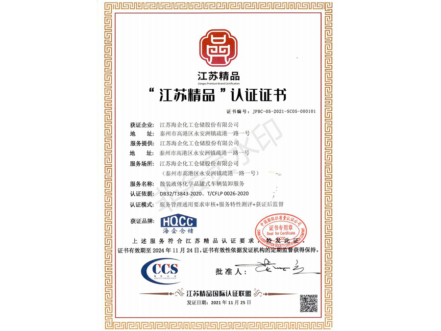 2021年江苏省石化港口行业中的第一家“江苏精品”