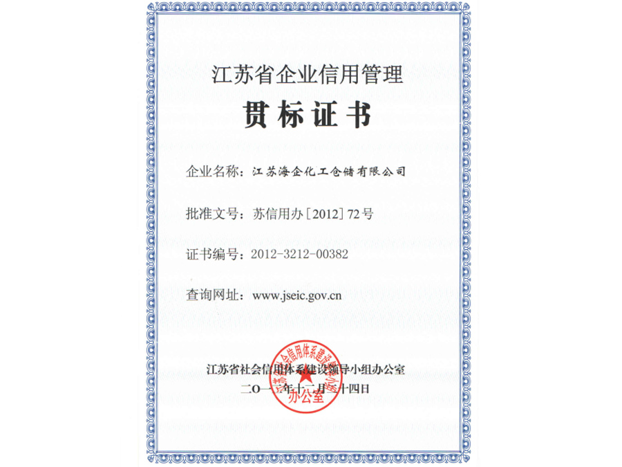 江苏省企业信用管理贯标证书