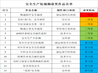 经全公司所有职工的投票,共评选出一等奖1名、二等奖2名、三等奖3名、参与奖7名,并用于公司日常安全培训宣传。