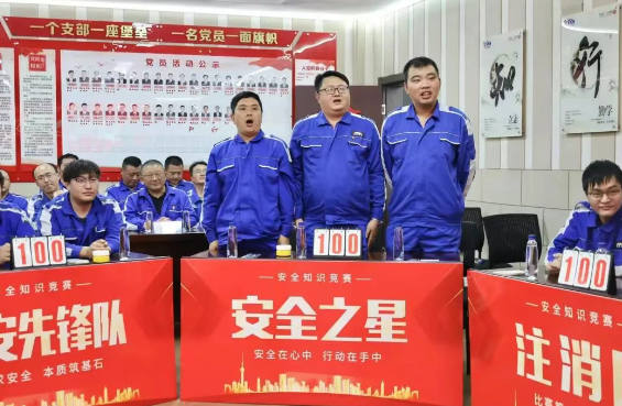 知识竞赛本次竞赛内容丰富全面,以精心汇编的《安全知识竞赛题库》为基础,涵盖了《习近平总书记关于安全生产重要论述》以及《危险货物港口作业重大事故隐患判定标准》等多部重要法规准则。一激烈角逐,赛制设计紧张刺激随着比赛大幕拉开,来自储运部、技术中心、安环部及公司行政部门的六支参赛队伍依次惊艳亮相。队员们以掷地有声的队名口号,淋漓尽致地展现出志在必得的昂扬斗志与决胜信念。本次竞赛,每支队伍通过必答题的沉稳较量、抢答题的速度比拼、风险题的策略博弈三大环节展开激烈角逐。